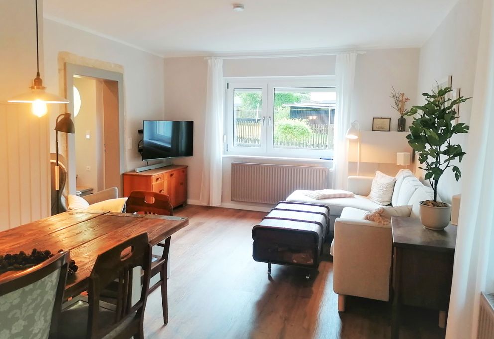 Die liebevoll eingerichtete Ferienwohnung SANDSTEIN befindet sich im 1. Obergeschoss unseres Hauses GlücksStein und bietet Platz für 4 Personen.