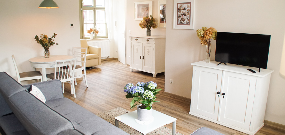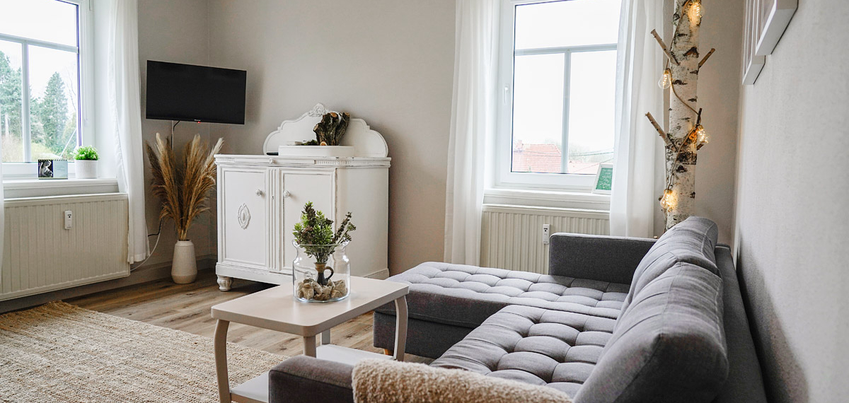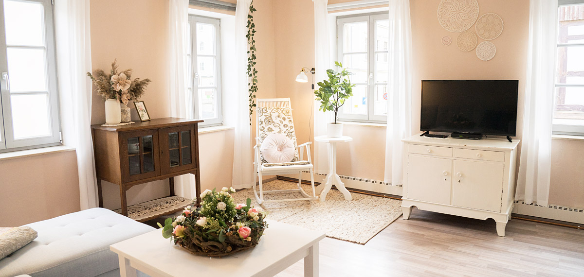 Genießen Sie das Ambiente unserer liebevoll sanierten und eingerichteten Ferienwohnungen in Ostrau (Haus GlücksStein) oder Sebnitz (Haus BlumenGlück).
