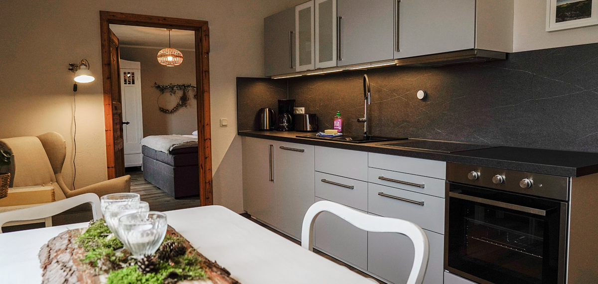Die liebevoll eingerichtete Ferienwohnung MONDSTEIN befindet sich im 2. Obergeschoss unseres Hauses Glücksstein und bietet Platz für 6 Personen.
