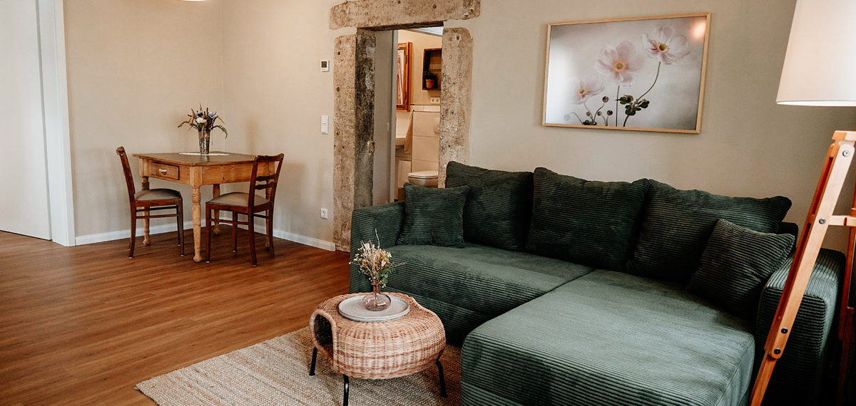 Genießen Sie das Ambiente unserer liebevoll sanierten und eingerichteten Ferienwohnungen in Ostrau (Haus GlücksStein) oder Sebnitz (Haus BlumenGlück).