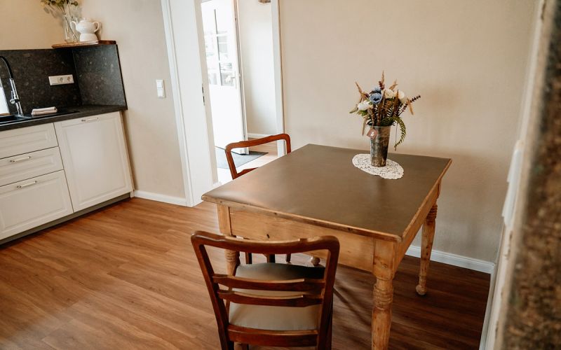 Esstisch für 2 Personen mit vollausgestatteter Küche