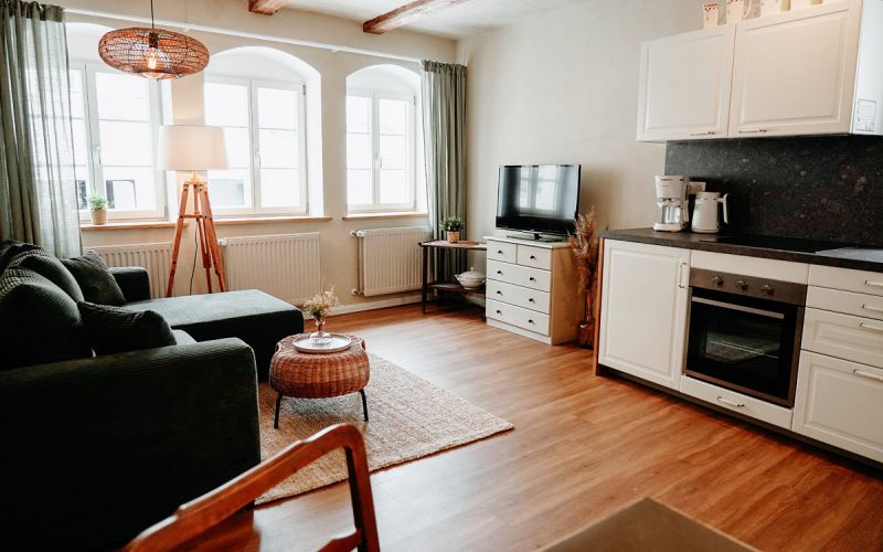 Die Ferienwohnung im ruhigen Zentrum der Stadt, mit Blick auf die benachbarte Kirche, bietet Platz für 2 Personen.