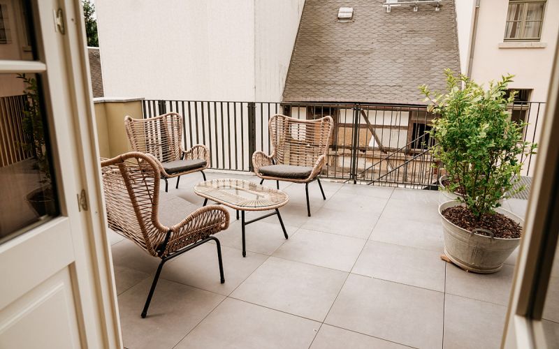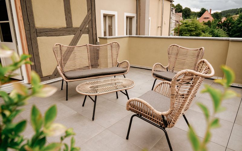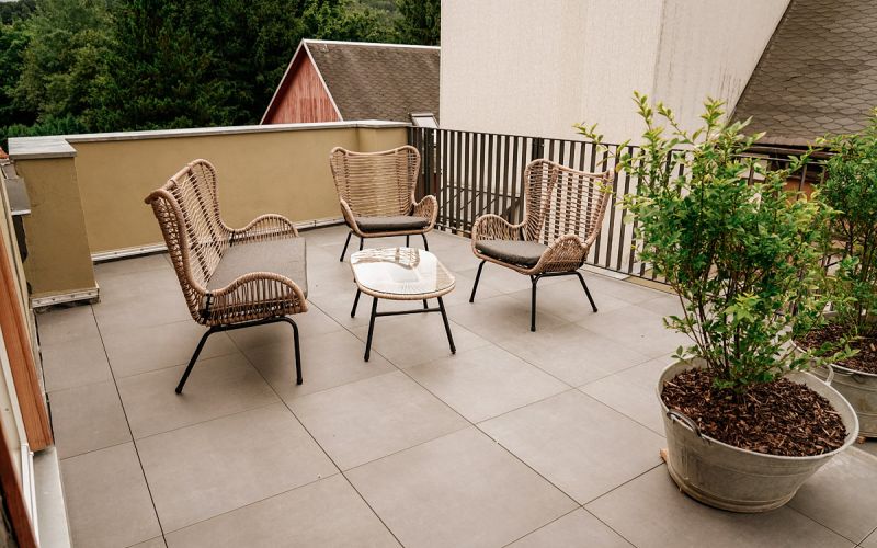 Unsere Dachterrasse mit Blick ins Grüne und über die Dächer von Sebnitz bietet eine perfekte Auszeit.