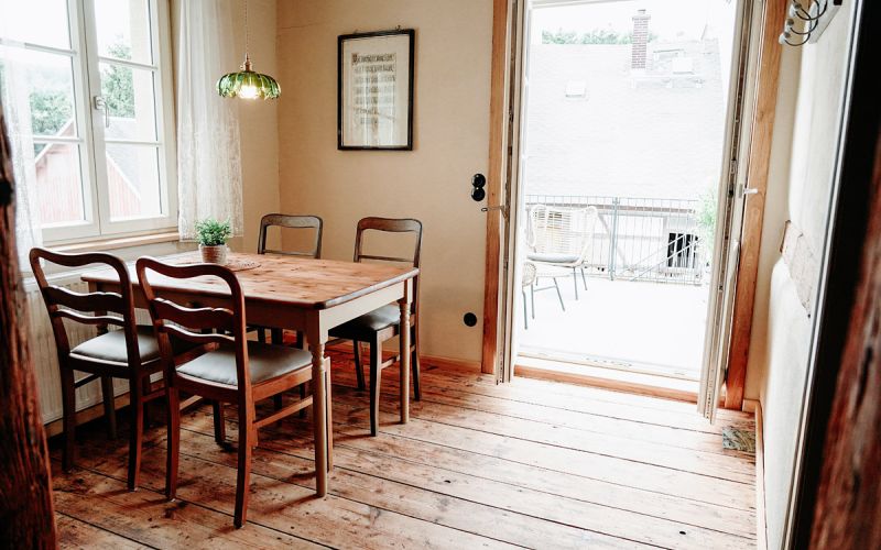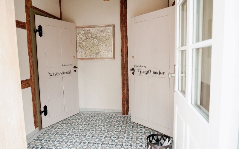Die Ferienwohnung GÄNSEBLÜMCHEN befindet sich im 1. OG mit Zugang über eine Außentreppe.