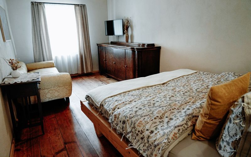 Die Ferienwohnung im ruhigen Zentrum der Stadt, mit Blick auf die benachbarte Kirche, bietet Platz für 4 Personen.