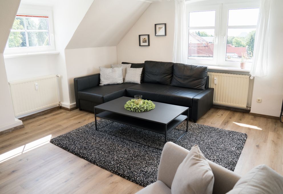 Die liebevoll eingerichtete Ferienwohnung MONDSTEIN befindet sich im 2. Obergeschoss unseres Hauses GlücksStein und bietet Platz für 6 Personen. Genießen Sie auch den Blick zum Lilienstein von unserer Terrasse.