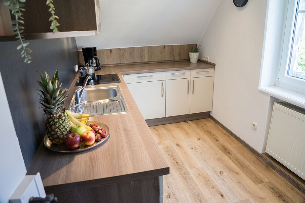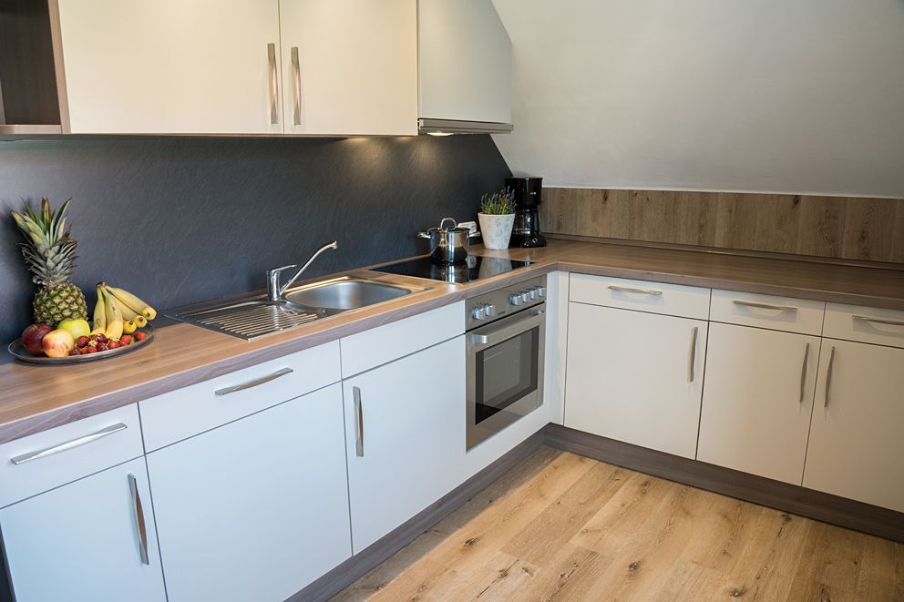 Die neu eingerichtete Küche befindet sich in einem Extraraum und ist bestens ausgestattet.