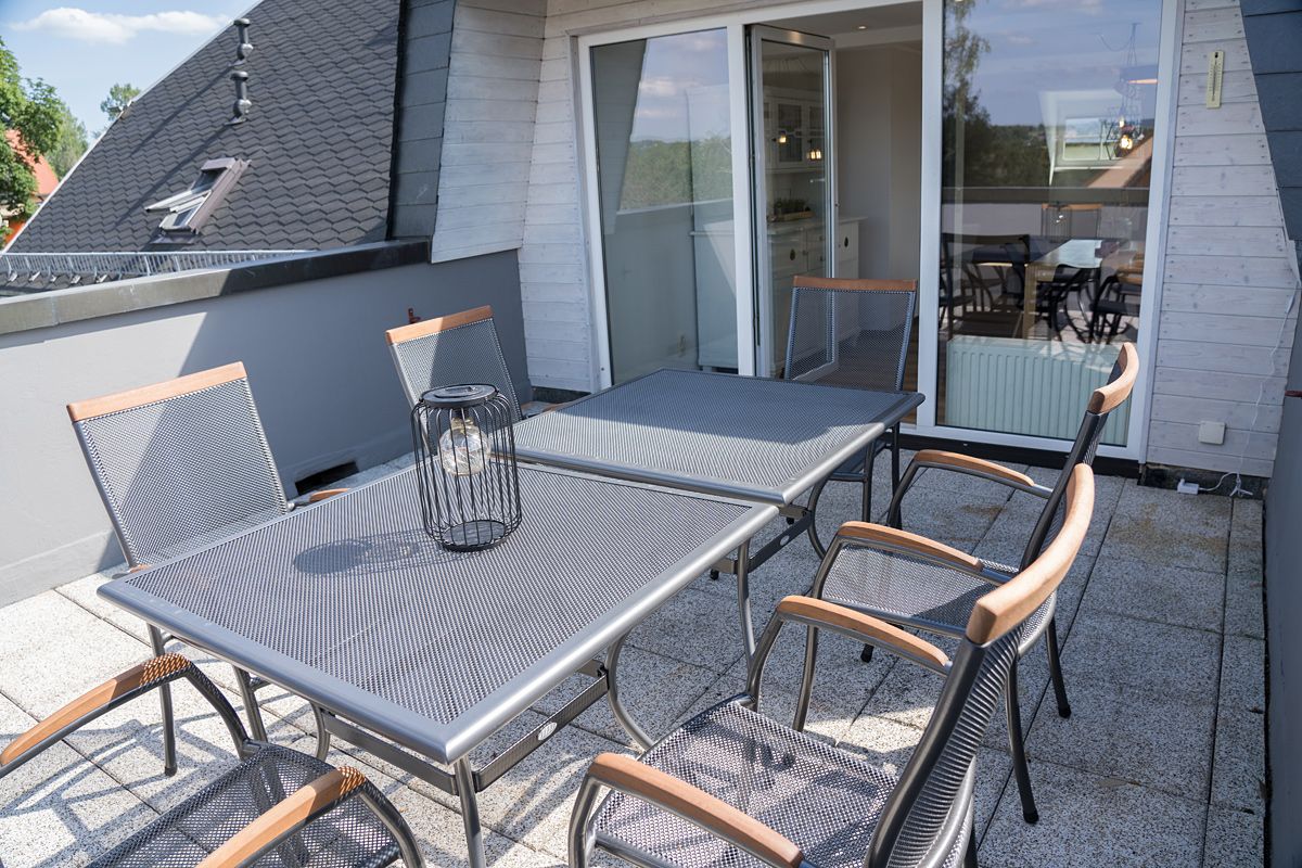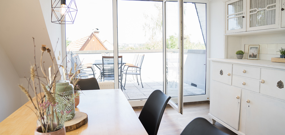 Direkt am Wohnzimmer befindet sich eine Terrasse, von welcher aus man bis zum Lilienstein blicken kann.