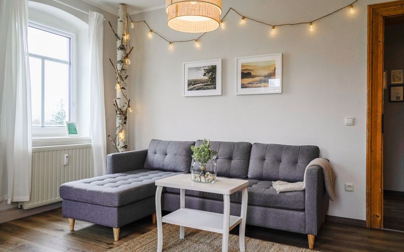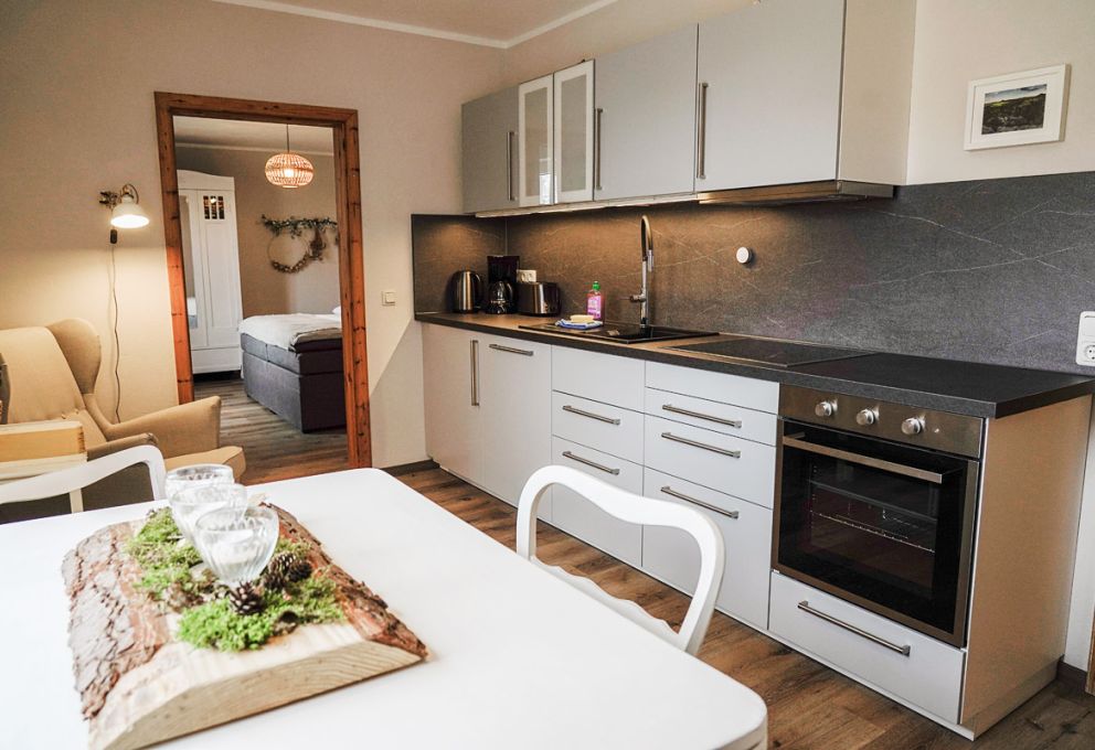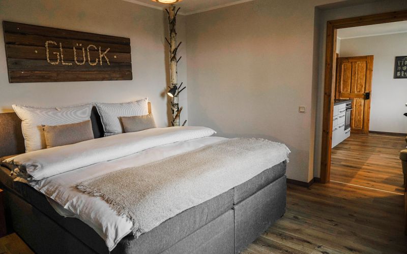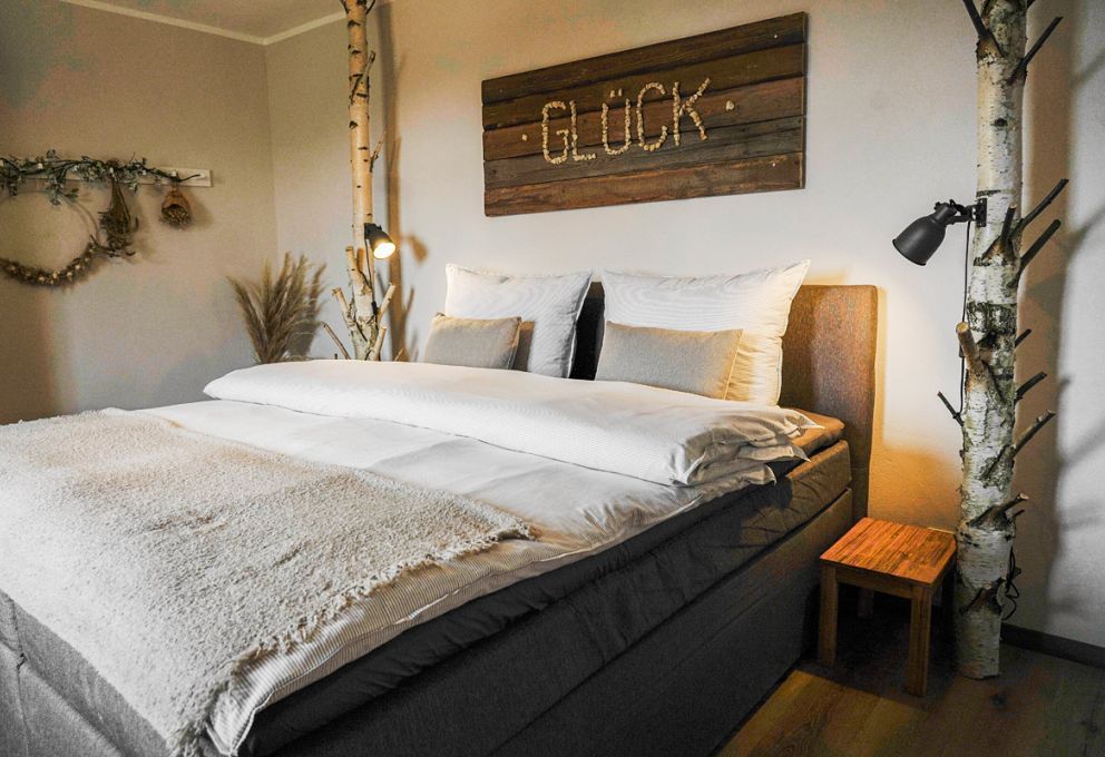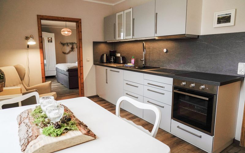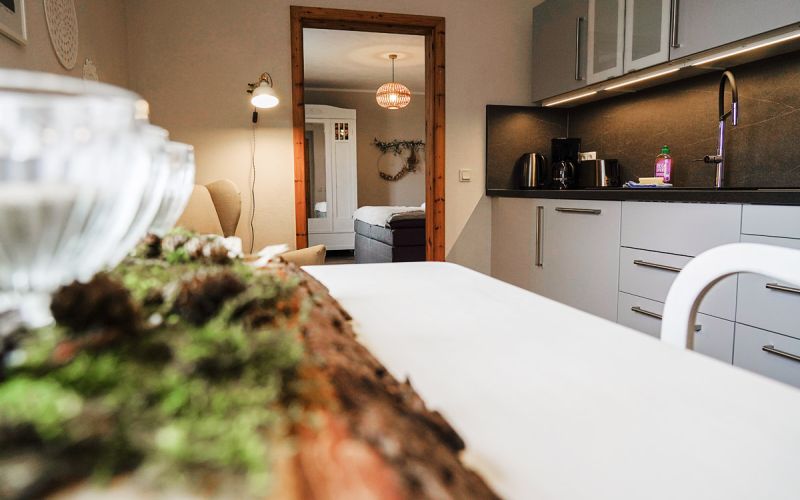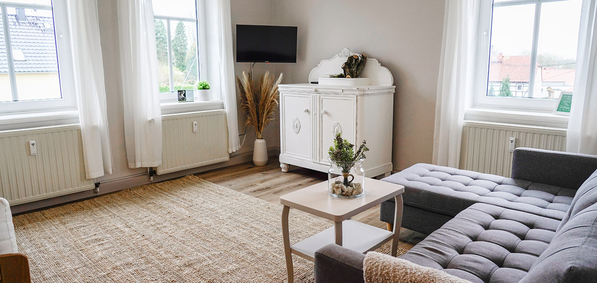 Die liebevoll eingerichtete Ferienwohnung SANDSTEIN im 1. Obergeschoss unseres Hauses GlücksStein und bietet Platz für 4 Personen.