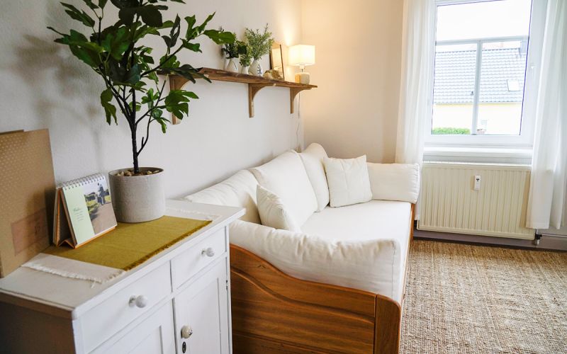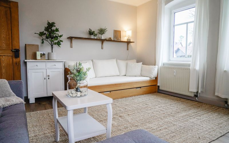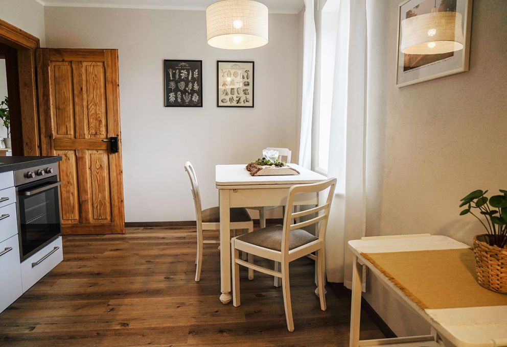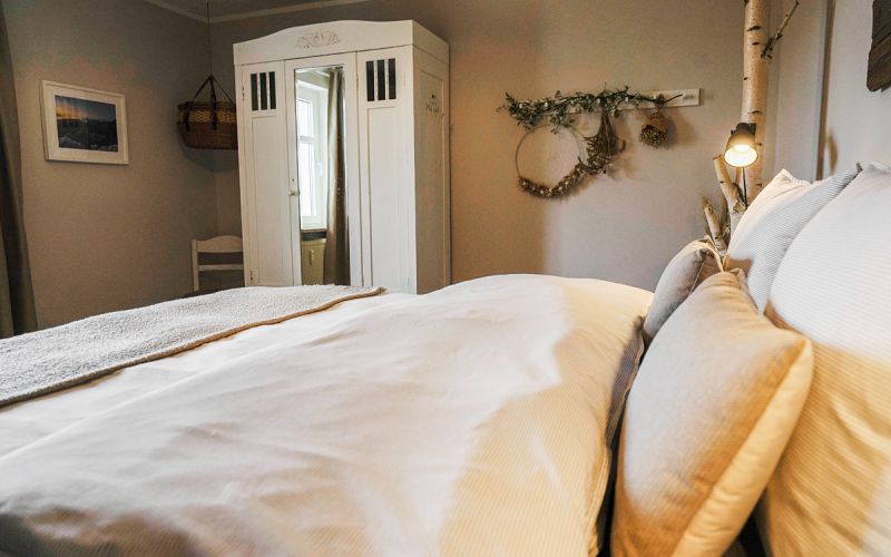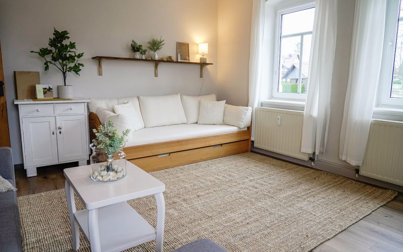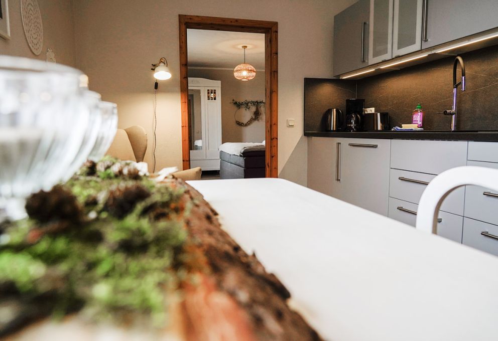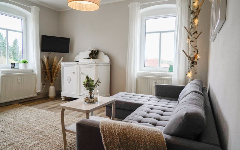 Die liebevoll eingerichtete Ferienwohnung SANDSTEIN im 1. Obergeschoss unseres Hauses GlücksStein und bietet Platz für 4 Personen.
